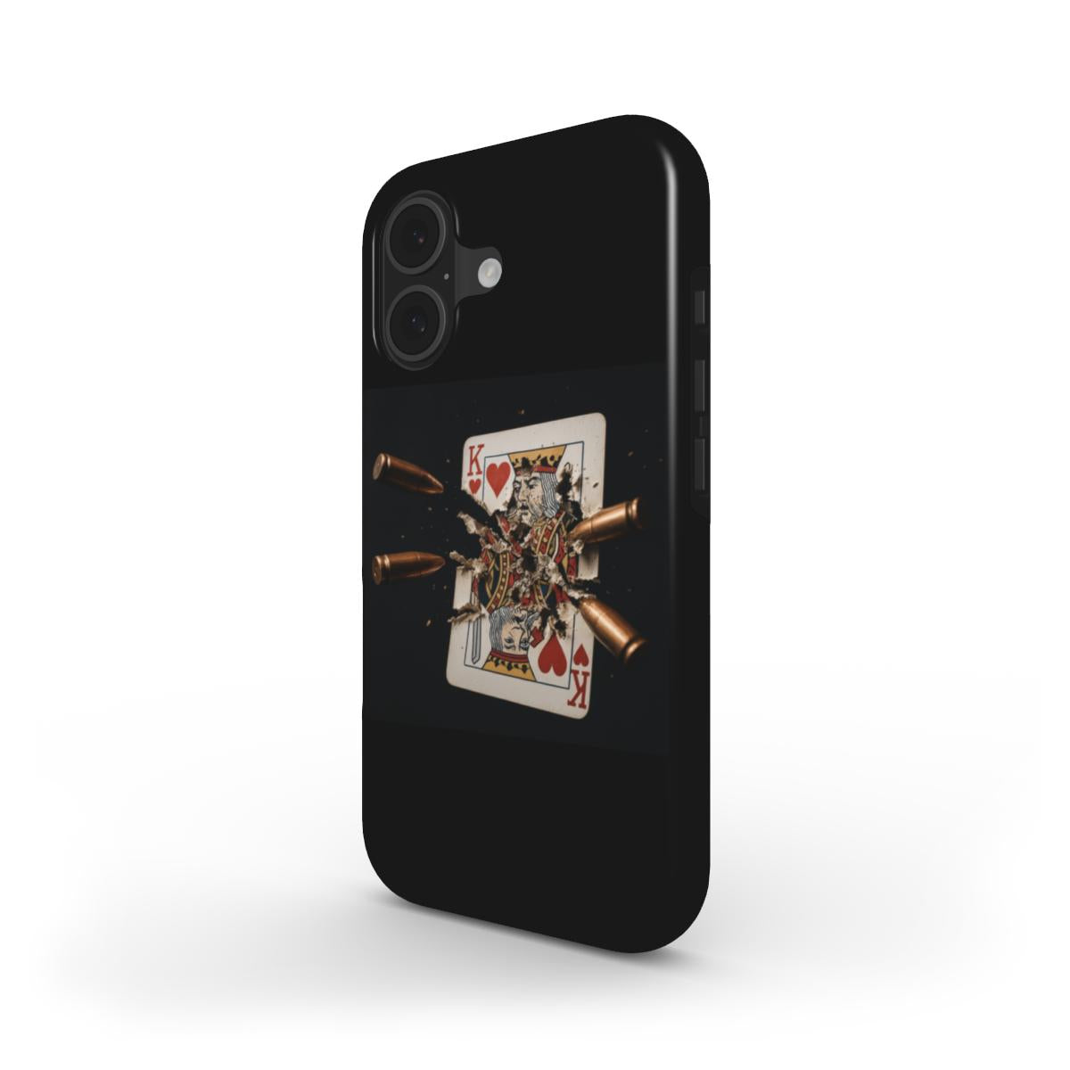 This case captures one of poker’s most iconic beats. The King of Hearts shredded by flying bullets, a savage metaphor for pocket aces obliterating pocket kings. This isn’t just design—it’s dominance. It’s confidence. It’s the calm stare across the felt when you're holding the nuts and they don't know it yet.