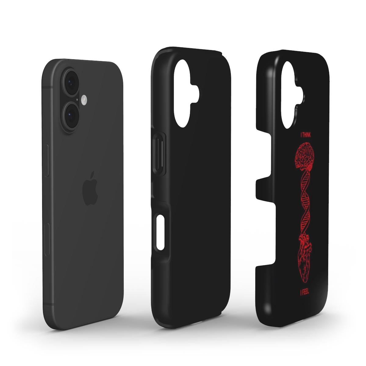 This is more than a phone case—it’s a personal philosophy in your pocket. The “I THINK / I FEEL” design captures the constant balance between logic and emotion, thought and instinct, brain and heart. Boldly printed in striking red over deep black, this case speaks to the ones who live at the intersection of intellect and emotion.