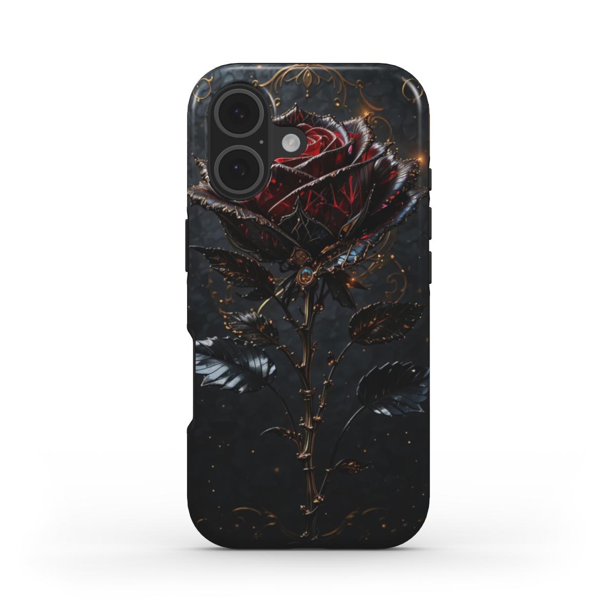 Embrace the dark allure of gothic elegance with our Dark Gothic Black Rose Phone Case . This stunning design showcases a blood-red rose encased in obsidian-black petals, entwined with detailed gold metal vines. Inspired by Victorian florals and stained glass art, this case evokes a sense of haunting beauty—romantic, mysterious, and luxuriously bold.