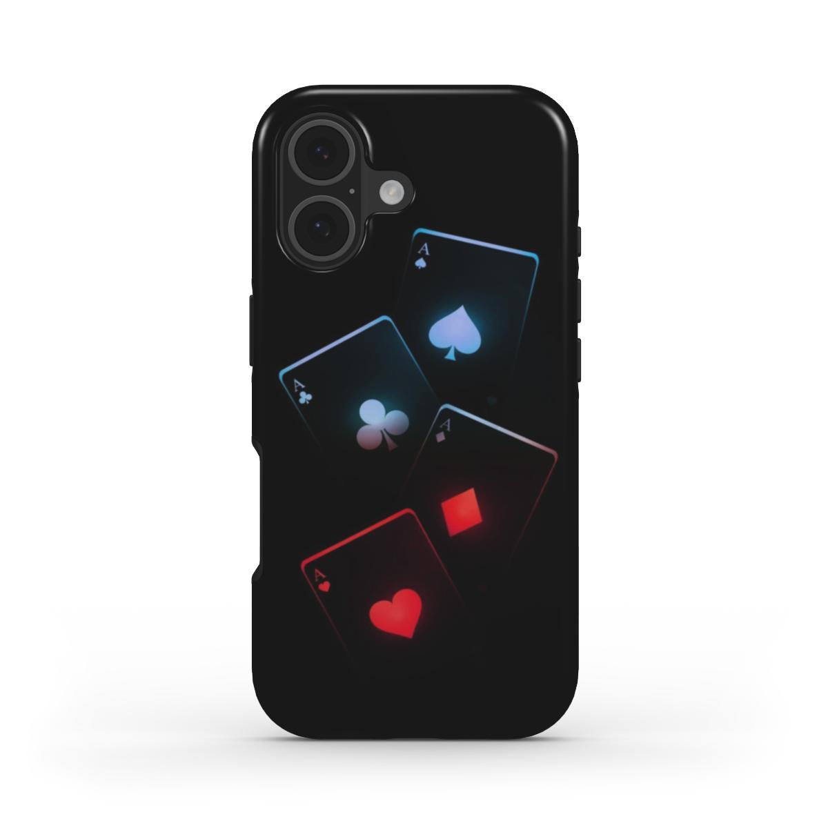 This Four Aces Neon poker phone case isn’t just about cards—it’s about control. Featuring a glowing, high-contrast design of all four suits, this card deck phone case channels the energy of late-night tables and high-stakes showdowns. Whether you're holding aces or bluffing hard, this bold phone case brings the tension and thrill of the game right to your hand.